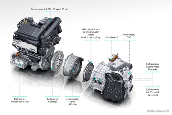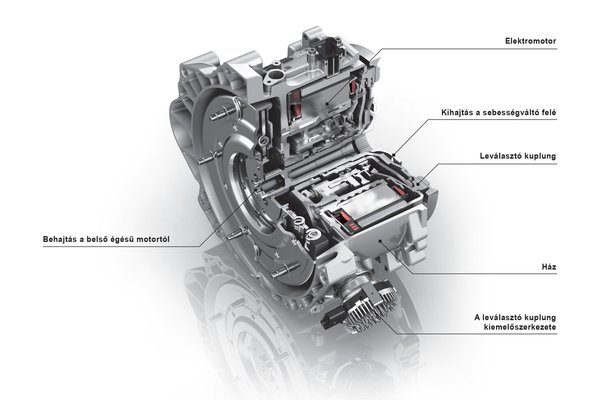 Gondolhatnánk, hogy ettől a hagyományos, bolygóműves automataváltóval kialakított hibrid hajtáslánctól a duplakuplungos automataváltós rendszer csak annyiban különbözik, hogy a belsőégésű motor-leválasztó kuplung-elektromotor-sebességváltó kvartettből a negyedik egység nem bolygóműves, hanem duplakuplungos váltó. Lényegében valóban így van, de azért nem teljesen, sőt, olyan kialakítás is létezik, amelyben egy kuplunggal kevesebbet találunk. De amelyikben mind megvan, abban is akad azért különbség. Míg ugyanis a bolygóműves automataváltóra épülő hibridekben a leválasztó kuplung szinte kivétel nélkül többtárcsás, olajban futó szerkezet, a duplakuplungosaknál ez lehet egytárcsás száraz tengelykapcsoló is.