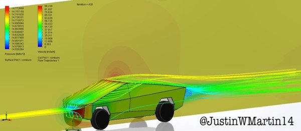 Szokásához híven Elon Musk már a bemutatón elkezdte hűteni a kedélyeket, és ledobta a témába vágó atombombát. Közölte, hogy akármilyen doboz formájú is a pickupja, az alaktényezője nem lesz több 0,3-nál. A formát elnézve ez annyira hihetetlen, hogy a számítógépes áramlási szimulációval foglalkozó vállalkozások közül több is ráugrott, hogy ellenőrizze Musk állítását. Apró nehézség azonban, hogy a Cybertruck egyelőre csak tanulmányként létezik, méghozzá annyira, hogy pontos méretei sem ismertek. A modellezők így kénytelenek voltak a rendelkezésre álló képek alapján elvégezni a számításaikat. Legutóbb például a müncheni Numeric Systems cég eresztette rá Pacefish nevű szoftverét a Cybertruckra.
