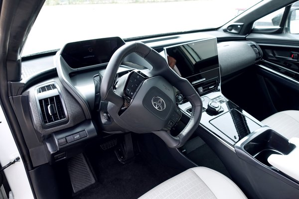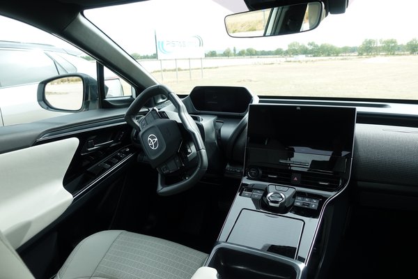 Az az autó, ami maga sem mindennapi darab, ugyanis a Toyota első teljesen elektromos hajtású modellje. A fura elnevezésű, bZ4X névre keresztelt típus teljesen elektromos kormányzással felszerelt prototípusa kívülről egyáltalán nem különbözik a hagyományos, elektromos szervós kivitelektől. Belülről azonban már más a helyzet. A leginkább árulkodó részlet az ökörszarv kormány, aminek egyik előnye azonnal szembetűnik. Nem takarja ki a műszeregységet, amit ha a hagyományos körkormányos kivitelben nézegetni szeretnénk, akkor a kormányt a Peugeot-kban megismert módon le kell engedni, sőt, kisebb termetűeknek az ülés felemelése is javasolt. (Igaz, cserébe valóban alig kell lejjebb nézni az útról ahhoz, hogy leolvashassuk a műszereket.) A másik árulkodó részlethez a ruha, azaz a műszerfal alá szükséges egy pillantást vetni. Minden más autónál ott látható a kormányoszlop egy részlete (hacsak le nem takarják egy kárpitdarabbal), ebben a bZ4X prototípusban azonban csak a helye van meg. A lyuk a tűzfalon, semmi több.