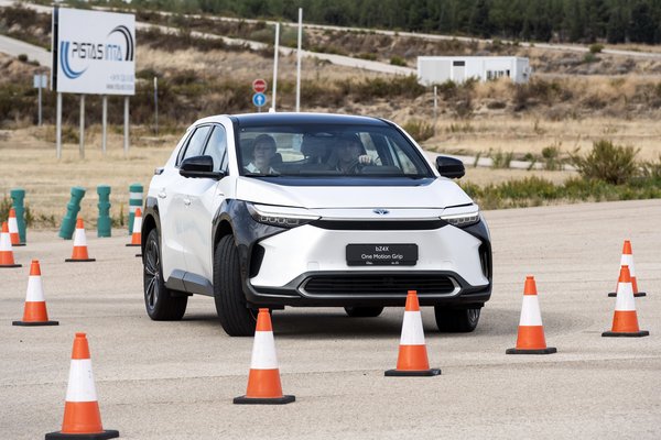 Érdekes módon sokkal izgalmasabb volt, amikor bójákból kirakott szűk folyosókon kellett keresztülkormányozni a preparált bZ4X-et. Ezzel körülbelül azt próbálták imitálni, milyen lehet egy parkolóházban, vagy szűk parkolóhelyen manőverezni. Az egyik furcsaság természetesen az, hogy az akár derékszögű elforduláshoz sem kellett több mint egy fordulatnyit elfordítani és átfogni a kormányt, mint egy hagyományos kormányzású autóban, hanem elég volt csupán valamivel tovább fordítani a kormányszarvat kilencven foknál.