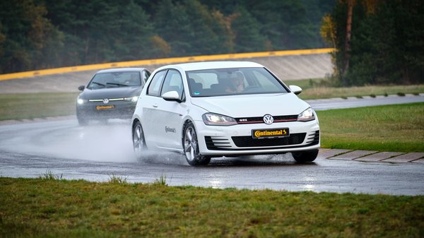 A két gumi közötti különbség számokban is kimutatható. A köridőket nem mértük, de a kilométerórára azért sikerült pillantást vetni. Általánosságban 10-15 km/órával gyorsabban lehetett bevenni a kanyarokat a SportContact 7-essel, mint az olcsóbb gumival. Egy körülbelül 20 méter sugarú félkör kanyart például 60 km/h helyett 75-tel lehetett a kisodródás legkisebb esélye nélkül bevenni. A Conti szakemberei azonban mértek köridőt, állításuk szerint 8 másodperc a különbség a két gumi között az 1800 méter hosszú pályán. Távolságra lefordítva ez egyébként annyit jelent, hogy a prémium gumis GTI egy kör alatt közel 200 métert ver rá (1800 méteres távon!) az olcsóbb gumival indulóra.