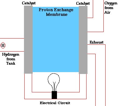 Ez a cucc olyan ravasz módon párosítja újra össze a hidrogént az oxigénnel, hogy egy katalizátorral leválasztja a hidrogénatomról az 1 darab elektronját, és azt egy kábelen elvezeti munkavégzésre, ami aztán ezen a kerülőúton jut vissza az oxigénmolekulához. A megmaradt pucér proton pedig egy elektrolitban “átúszik” az oxigénmolekulához.