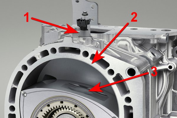 Ebben azonban nem csupán a befecskendező fúvóka játszik szerepet, hanem a bolygódugattyú mindhárom palástján, speciálisan kialakított mélyedés is. (Egy bolygódugattyú fordulat alatt mindhárom paláston történik gyújtás, miközben a kialakításból adódóan a főtengely hármat fordul.) Ilyen jellegű bemélyítést az RX-8 dugattyúján is kialakítottak, de a képeken látható, hogy az új Wankel-motor dugattyúján teljesen más, sokkal bonyolultabb, összetettebb kiképzést kapott, nem egy viszonylag egyszerű vályú.