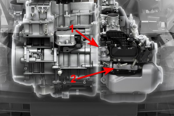 De csak egy, mert folytatásként ott a közvetlen befecskendezés, ami a korábbi szívócső befecskendezést váltotta fel. A megoldással már évekkel ezelőtt kísérletezett a Mazda annál a kísérleti Wankelénél, ahol a szívócsőbe irányuló benzinbefecskendezést közvetlen hidrogén-befecskendezéssel egészítették ki – természetesen a káros-anyag kibocsátás csökkentése érdekében. A közvetlen benzinbefecskendezés kevesebb veszteséggel jár, a befecskendezett benzin hűtő hatásával segít a sűrítési viszony növelésében, és még azt is segíti, hogy az égéstérben koncentrálni lehessen a benzin-levegő keveréket, vagyis egyfajta rétegtöltést, az átlagot tekintve szegénykeverékes üzemmódot valósítsanak meg.