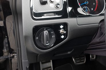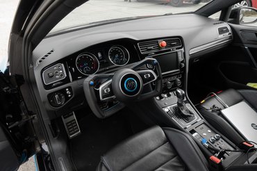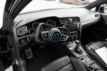 A Golf további látható módosításainak többsége a különleges kormányra vezethető vissza. Eltüntették mögüle a kormányoszlop borítását, amit egy szövetszoknya váltott fel, és a bajuszkapcsolókat is eltüntették. Hogy mindezt miért, az elején nem nagyon értettem, majd jött egy próba, amikor egy pillanat alatt megvilágosodtam - de erről később. A bajuszkapcsolók funkcióit azonban annak ellenére fenn akarták tartani a fejlesztők, hogy az autó jelen állapotában nem közlekedhet közúton, ezért számos helyre szétszórt kapcsolókkal váltották ki őket.
