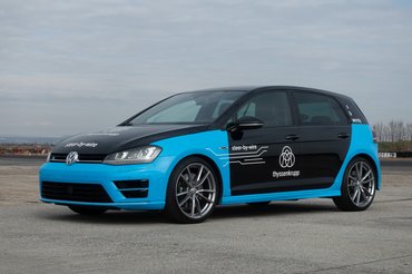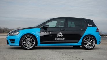 A Thyssenkrupp Automotive E/E (elektromos és elektronikus) budapesti fejlesztőközpontjának Rendszerintegrációs mérnöke, Szabon Ákos azért tudta megtenni, amit tett, mert egy a fejlesztést szolgáló, preparált autóban foglaltunk helyet. Egy hetedik generációs VW Golf R-ben, amelynek kormánytengelyét nemes egyszerűséggel kettéfűrészelték, és a vágás helyére egy tengelykapcsolót építettek be. Ha a tengelykapcsolót zárják, a kormány lényegében úgy működik, mint a ma általánosan használt rendszerek. Ha azonban kinyitják, a kormánykerék és az első kerekeket valójában elfordító kormánymű között teljesen megszűnik a mechanikai összeköttetés - csak vezetékeken futó elektromos jelek tartják közöttük a kapcsolatot. Magyarán a korábban hagyományos megoldás vezetékessé, szaknyelven steer by wire rendszerűvé válik. Ebben a korai stádiumú fejlesztői autóban a kormányoszlop vésztartalékként (szaknyelven fallback-ként) megmaradt, és ugyan a Thyssenkrupp ma már oszlop nélküli járműveket fejleszt, a steer by wire rendszer sajátosságainak bemutatására és tesztelésére ezt a korábbi generációs tesztautót használják.