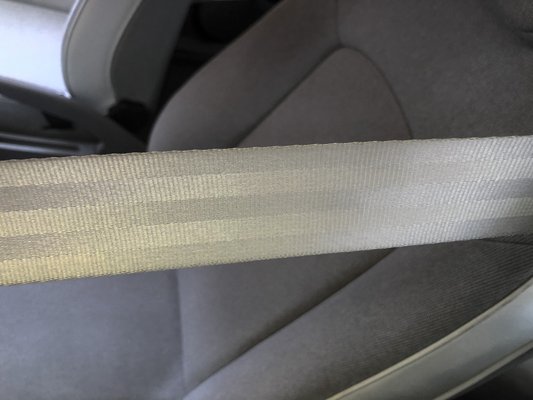 Ha sötét színű az öv anyaga, talán sosem veszed észre, mennyi minden ragadt a szövetbe, de egy világosabb övön már egész hamar észre lehet venni, hogy már nem úgy néz ki, mint amikor a gyárból kijött. Érdemes megnézni ennek a Renault Zoénak az öveit, pedig csak durván százezer kilométer van a kocsiban: elöl a sok használat miatt lett egészen sötétbarna, hátul meg az ovijárat közben kilöttyent gyümölcslé, rámaszatolt csoki meg fene tudja még mi színezte foltosra.