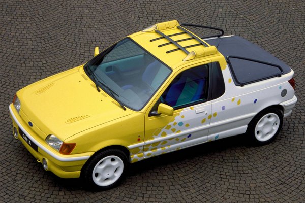 Miután 1970-ben a Fordhoz került, a Ghia több prototípust is tervezett a márkának, például ezt a kor fogalmai szerint szabadidő-autónak szánt pickupot. A harmadik generációs Fiesta sokoldalúságát kifejező tanulmányt 1989-ben, Frankfurtban állították ki. A Ghia mérnökei olyan komolyan vették a feladatot, mintha egy gyártásra szánt kivitelen dolgoztak volna. A lökhárítóba épített ködlámpákon túl a tetőre áramvonalas keresőfényeket és okos rögzítési megoldásokat szereltek, a fülke szellőzését nyitható hátsó ablakkal és kivehető hátfallal igyekeztek javítani.