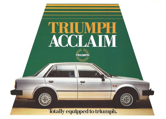 Az önhibájából haldokló brit autóipar, azon belül is a hírhedt British Leyland a Honda-alapú Acclaim 1981-es bevezetésével nyírta ki az 1923-óta már autókat is gyártó Triumph márkát, mely a Rover széthullása óta a BMW tulajdona.