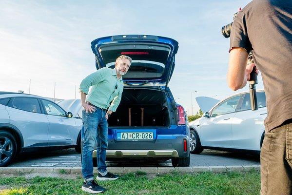 A Mini Countryman SE All4 egyáltalán nem kicsi autó, de ebből a felhozatalból mégis a legkisebb volt 4,44 méteres hosszával és 2,69 méteres tengelytávjával. A csapat egyetlen összkerékhajtású autója, ráadásul a Model Y utáni második legerősebb, és a 64,7 kWh-s akkuja is legalább 10 kWh-val kisebb, mint bármelyiknek, amit mellé tudtunk állítani, a Mach-E-nek pedig közel 30 százalékkal nagyobb a pakkja, így már a hivatalos hatótávból is egyértelmű volt, hogy ez fog először lemerülni, cserébe nagyjából ugyanannyiba kerül extrák nélkül, mint az érzelmek kiváltására totálisan alkalmatlan Tesla Model Y, és milliókkal olcsóbb, mint az EV6, vagy pláne a Mach-E.