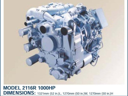 A kétrotoros 2116R 1,3 méter hosszú, 1,27 széles és 1,27 magas, tehát lényegében majdnem tökéletes kocka alakja van és sokkal kisebb volt, mint az azonos lökettérfogatú dugattyús hajómotorok. Hogy könnyebb legyen elhelyezni, a MAN teherautókba szánt D2066 nevezetű, soros, hathengeres dízelmotorja csak 10,5 literes, de 1,5 méter hosszú, 1,2 magas és 0,85 széles, tehát nem sokkal kisebb, a teljesítménye mégis csak legfeljebb 435 lóerő – nagyjából 2000 Nm nyomatékkal.