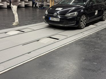 Miután sem maga az alkatrész, sem annak belső egységei nem rezegnek a kritikus szint felett, fontos azt is vizsgálni, hogy hogyan viselkednek az autóba való beépítés után. Éppen ezért a Bosch kampuszán kialakítottak egy még nagyobb süketszobát, ahol komplett járművek zajkibocsátását tudják mérni. Ehhez beépítettek egy állítható mérőpadot, ami alatt négy egymástól független, egyenként két-két méter átmérőjű görgő dolgozik. Ezeket a teszt alatt álló járművek a saját erejükből forgatják át, és a pad akár 1000 lóerős teljesítményt is képes kezelni. A görgők távolsága olyan széles tartományban állítható, hogy a kisebb személyautóktól kezdve egészen a nyergesvontatókig, bármit képes mérni.