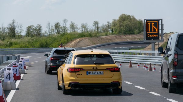 Nincs időm azon töprengeni, hogy fotózzak vagy videózzak, mert 250 km/h-s tempóval hamar elfogy a 950 méter hosszú egyenes, és miközben én a zoommal babrálok, kirendelt tesztpilótánk már veszi is el a gázt, hogy a 47 fokban döntött kanyarba érve 170-re lassítva, elengedett kormánnyal meséljen a centrifugális erő, az Audi RS4 Avant és Európa legújabb oválpályájának kölcsönhatásairól. Utána beültettek az RS6 Avant GT-be…