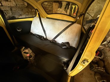 Az eredeti üléseket imádom, viszont hiányzik belőlük a fejtámla. Két utólagost szereltem fel ideiglenesen és közbe azon agyalok, hogy honnan szerezzek fejtámlás üléseket – természetesen eredetieket, az epedarugót nem akarom elengedni. Muszáj, mert ha belém jönnek hátulról, akkor pedálos kuka módjára nyílik le a fejem a nyakamról, az pedig elrontaná a napomat. A hátsó ülés felső része szétnyílt, elkezdett kiperegni alóla a filcszerű anyag is, ezért vettem egy jobb minőségű lepedőt és a nappaliban csodálatos – rémesen amatőr – kárpitos munkát végeztem. Még néhány apróságot rendbeszedtem, a váltó alatti gumiharangot rögzítettem, a pedálokat kipucoltam és rendeztem a szőnyegkérdést is. A beltér nagyjából kész van, de egy kis pofozgatás és csinosítgatás mindig belefér.