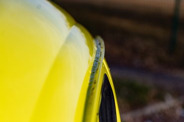 Kívül ennél rosszabb a helyzet. Megvettem rá a csicsákat, mint az új indexek vagy a króm szempillák, de ezektől sem lett kevésbé rozsdás. Tisztes rohadás van az első fényszórók mellett, illetve minden vízelvezető csatornában és élnél. A kaszni korrodál, a padlólemez viszont nem. Csak a pedálok mögött vannak leváló rozsdalevelek, de amilyen vastag a fém, igazából nem zavar. A festés takony munka. Valaki ivott egy pohár sárga festéket és letüsszentette. Tiszta narancsbőr az egész autó, rengeteg helyen vannak megfolyások és 600-800 mikron a legvékonyabb helyeken. Tróger munka ez, de messziről elfogadható.