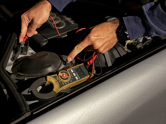 Ideális tesztalany volt egy éppen OT-korba lépett Audi A6 C4 erre a feladatra, hiszen egyrészt az analóg belső feszültségmérője pontos értékeket mutat multiméter nélkül is, másrészt van egy gyakorlott módszer az akku lemerítésére, ez pedig a gyári Webasto állófűtésének nagyjából egyórás járatása – természetesen nem maga az állófűtés, hanem az autóban automatikusan elinduló, és az akkuról működtetett szellőzőrendszer, ami leharapja az akkut, biztosra mentünk, és terheletlenül 11 voltos, izzítás közben 10 volt alá eső akkuval próbálkoztunk, amivel önerőből nagyjából egy fél motorfordulatot lehetett volna elérni.