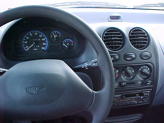 A Matizok rapszodikus felszereltsége miatt a tesztelt SE (Matyi) hátul nem tartalmaz fejtámlát, van viszont két automata és egy kétpontos hagyományos (antik) öv; elöl nincs légzsák, van viszont a tetőn korlát. És villanyablak. És szervokormány. És "Objects in the mirror are closer than they appear" - figyelmeztetés. És centrálzár. És zöld üveg. És indításgátló. Na!? Mi folyik itt? Ez egy kisautó!