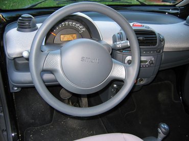 Vagy annyira nem is? A Smart állítólag nagyon biztonságos, a négy sarokba tolt kerekek gyűrődő zónaként funkcionálnak, a tridion fantázianevű biztonsági cella mindent megtesz a bennülők egybentartásáért, vannak légzsákok és biztonsági övek. Ha összecsattanna a 350 kilós Isetta és a kétszer olyan nehéz Smart, inkább ülnék a Smartban, és nem csak azért, mert negyed méterrel hosszabb.