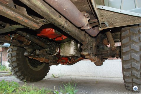 Az sem mindegy, hogy a rövid kipufogó a jobb első ajtó aljánál püföli a légkört, egyetlen, nem túl nagy hangtompító dobon át. Egyébként haszongépjárműves az egész. A vonóhorog olyan, mint a teherautóké, a kerekek, az alváz hatalmas, biztosan jobban bírja a terhelést, mint a Mississippi fölött átívelő hidak . Van rendes kapcsolható összkerékhajtás, felező, az első és a hátsó diffik pedig a műszerfalon lévő gombokkal, pneumatikusan zárhatók. Profi cucc, minden működik ma is, ötvenegy év után, ez egy téli próbán már kiderült.