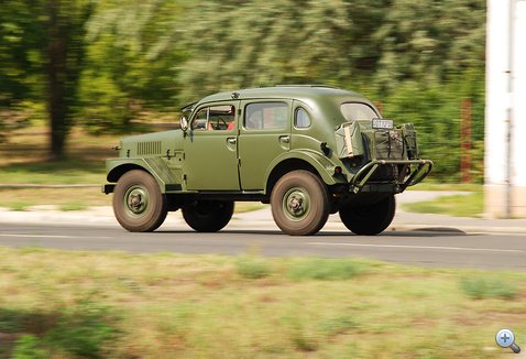 Akkor milyen is menni vele? Árnyalom a képet. Egy ötvenes évekbeli személyautóhoz viszonyítva nagyjából olyan az ugrás, mint ma egy Toyota Aurisból egy RAV-4-be átülve. Nem óriási a különbség, de dinamikában, rugózásban erős a 4x4-es hátránya. Viszont a hasonló korú katonai járművekhez viszonyítva a Sugga orvosi műszer.