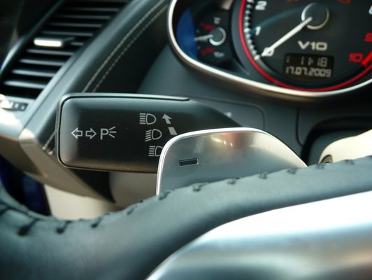 Az Audiban R-Tronic néven futó, egykuplungos elektrohidraulikus félautomata váltó volt már Lamborghiniben és Ferrariban is – nekem talán ez az egy alkatrész nem tetszik különösebben az R8-ból. Az R-Tronic ugye egy hagyományos váltószerkezet kuplunggal, de nincs bekészítve a következő fokozat, mint a DSG-ben. Így pedig hiába őrületesen high tech minden más, lassúnak tűnik a váltás, ami papíron 0,09 másodperc: kilenc század!