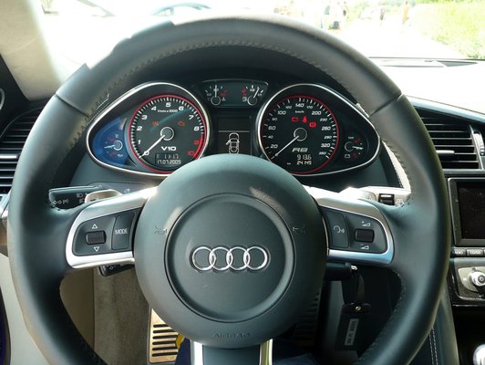 Talán még maguk az Audi mérnökei is bizonytalankodtak egy kicsit, amikor az egyik tesztpéldány porrá égett: szükség van egyáltalán a V10-re? Természetesen nincs. De hát az R8-ra sincs a világon semmi szükség, leszámítva természetesen, hogy kell. Az Audi RS4 V8-asa nagyon elöl van a kedvenc motorjaim listáján, de nem lehet az ember szemellenzős V8-rasszista, és akkor azt mondja: mégis, mi bajunk lehet szegély árva V10-essel?! Zavar valakit plusz 98 ló? Főleg, hogy így az R8-as testében ugyanazt a gyorsulást kapjuk, mint a Gallardóé: 3,9 a nulla-száz. Ugye, hogy kéne. A 315 km/h-s végsebességet nem is emlegetem, mert az már nem evilági tempó, csak a nettó, de annál megalapozottabb rettegés - ez nem dragster, hanem kompakt szupersportautó, ami a vezetési élményről szól.