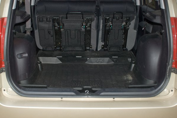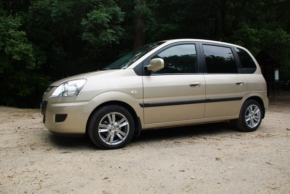Maga a sziluett nem rossz, sejteti a helyet és a tágasságot, ami odabent fogad. Ez utóbbi kétségkívül egyik legnagyobb előnye. Vállban, köszönhetően a hasáb-keresztmetszetnek, három átlagos termetű utasnak sem szűk hátul, a 2/3-1/3 arányban osztott, mozgatható ülőlapok pedig garantálják a bőséges lábteret, igaz, a csomagtér rovására, amely 300-350 literes térfogat között változtatható. Teljesen előredöntött hátsó ülésekkel 1,284 köbméternyi helyre pakolhatunk. A variálhatóság tehát kielégítő, a tökéleteshez már csak a teljesen kivehető ülések hiányoznak, de ilyenkor mindig gondoljunk arra, hogy ez egy olcsónak mondott, kicsi, koreai egyterű.