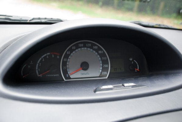 A középre helyezett műszeregység copy-paste módszerrel készült, a Toyota optitronos megvilágítását imitáló számlapok nem rosszak, bézs fényük kellemes és állandó, mivel a műszerfal-világítás fényereje nem állítható. Ez a kisebbik baj, ellenben az, hogy sem bim-bamozás, sem LED-villogás nem figyelmeztet a menet közben kikapcsolt biztonsági övekre, azért már szálkás tud lenni – ismétlem – egy családi autónál, ahol meglehetősen nagy az esélye, hogy a hátsó sorban gyerekek utaznak majd. Ennyire azért nem olcsó, ellenben dicséretes a három ISOFIX-bekötési pont.