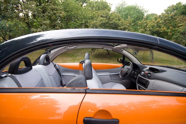 Nyitáskor kiderül, hogy mi is a gond a Pluriel tetejével. Rengeteg az érzékelő: a kétfelé nyíló hátsó üvegnél, a csomagtérfedélnél, a tetőoszlopoknál, satöbbi, és ha nincs meg mindenhonnan az OK-jelzés, akkor nem nyílik a tető. Ám az átkozott komputer arról bőszen kussol, hogy épp miért nem hajlandó megmozdulni a ponyva. Ilyenkor aztán az ember újra kinyit-becsap mindent, és reménykedik. Ez többnyire működik is, persze a vászontető ettől még szorul a sínben, nem árt egy kicsit segíteni neki.