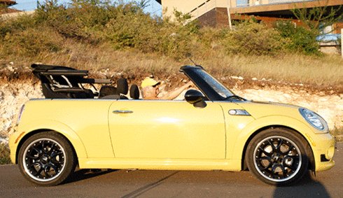 És a hangok, a hangok! A BMW nagyon érti, hogyan kell az érvényes zajnormák mellett kipufogót hangolni. Motorban elképesztően szól a gyári K1300 R, autóban e Cooper S a példátlan: nem árt, ha van hozzá valami hangvisszaverő felület, kőfal vagy dupla szalagkorlát, de a morgást és durrogást így is hallani. Hiába kabrió, nekem kéne, ahogy van. Persze vehetnék hagyományos kivitelt is, de hiába, ez így, ebben a formában kegyetlenül megtetszett.