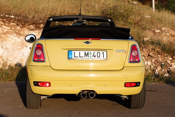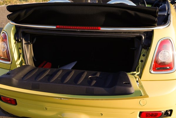 A tetőnyitás gyors, 30-as tempóig elvégezhető, többször úgy sikerült előadnom, hogy épp váltott a lámpa, de mindig ki tudtam úgy gurulni, hogy senkit ne tartsak fel. A hátsó ülés tényleg inkább másfél személyes, legfeljebb gyerekeknek jó, és ha beülnek a gyerekek, nem is tudjuk hová rakni a családi poggyászt, mert a csomagtartó csak 125 liter, tehát érezhetően kisebb, mint egy Mazda MX-5-ösé. De a Mini ettől függetlenül jól ki van találva, hiszen ezt vagy családmentes életművészek veszik, vagy családos, jómódú életművészek, akiknél úgyis van minimum még egy autó a családban.