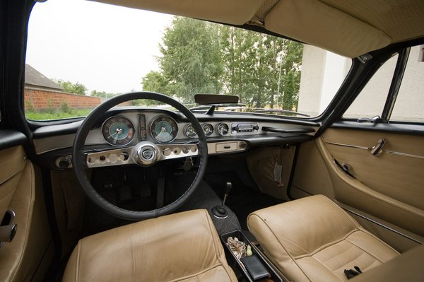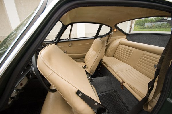 A világoskék közepű Smiths-műszerek finom harmóniában vannak a tejeskávészínű bőrrel, a tölcsérformájú kapcsolók időtállóak és sallangoktól mentesek. Az ülések mélyen vannak, a magas övvonal szándékos: miután Assar Gabrielsson felesége autóbalesetben hunyt el, a biztonságot előtérbe helyezték – ez érvényes volt a P1800-ra is.