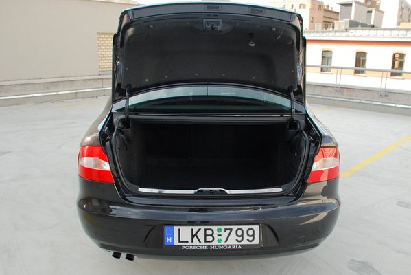 Ez volt az a pont, ahol elakadtam. Átnéztem az íróasztal felett, mondom Papp Tibinek, hogy ez jóformán csak öt centi. Nem hiszi, megnézi. Tényleg annyi, hát ez nem létezik. Biztos elcsalták a csomagtartót. Aha, lyukra futottunk ezzel is, a Passat 485 liter, ebbe a dögbe pedig alapból 565 VDA-téglának van hely, na oké, 73 milliméterrel hosszabb, ez elfogadható. De belül? Mi van itt? Hogyan? Mi a fészkes fenét csináltak ezek a csehek, hogy alig öt centiből ekkora dögletesen nagy csarnokot hoztak össze odabent? A Passat sem szűk, na de EZ a lábtér súlyos centimétereket ver rá. Nem értettük, csak hümmögtünk és legalább tucatnyi elméletet gyártottunk.