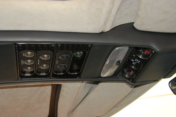 Amíg hatoltunk, volt időm szétnézni. A középkonzolon, a váltó mögött odatákolt guminyomás-ellenőrző panel, a kardánalagútra a vádlinál felszerelt motorosülés-állító gombok szerintem Focus ablakemelő-kapcsolók – de ezt néha az Aston Martinnál sem adják elő szebben, pedig ott tömegtermelés folyik a Bristolhoz képest. A műszerek szépek, még a kormány alá is jutott néhány (csak nem a TVR-nál látták?), a kütyümániások ordítva, lila fejjel onanizálnának itt. Nemhogy a mindenféle szokásos löttyhőmérsékleteknek és -nyomásoknak jut műszer, de még a benzinnyomásnak is, sőt, a tetőn még üzemóra-számláló is akad. Vakulj paraszt, van ilyen a Veyronodban? Leülhetsz hülyegyerek.