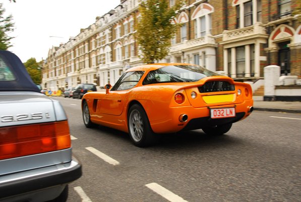 A teszt javarészt abból állt, hogy a szalont vezető Richard Hackett kivitt a szervizhez egy Blenheimben, ott hosszasan előtúrtak egy próbarendszámot a Fighterre (és módszeresen leragasztották szigszalaggal az eredeti rendszámát), majd beültünk, és a kora délutáni londoni dugóban visszahatoltunk a Kensington High Street-i szalonhoz. Akadtak hosszabb háztömbök, ahol kicsit rálépett a gázra – hát ez szaggat. És penetráns, földöntúli géphangja van. Az ember nem úgy érzi, hogy közel ül a motorhoz, hanem inkább mintha ő maga lenne benne valami jelentéktelen alkatrész. Nem szép a hang, inkább lenyűgöző. Hiszen, mint tudjuk, szép hangja a V8-nak van, a V10 inkább gyilkos.