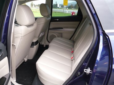 A műszerfalon nem nagyon variáltak, viszont mivel végre hátul is ültem egy órát egy CX7-esben, végre alaposan meg tudtam nézni, és a cockpit szépsége onnan látható át igazán. A legjobban a gyönyörűen ívelt árnyékoló sikerült, alatta a navigáció és az általános információk kijelzőivel, melyek mellett ott az SD kártya helye, amin a Navitec kelet-európai térképe is fut.