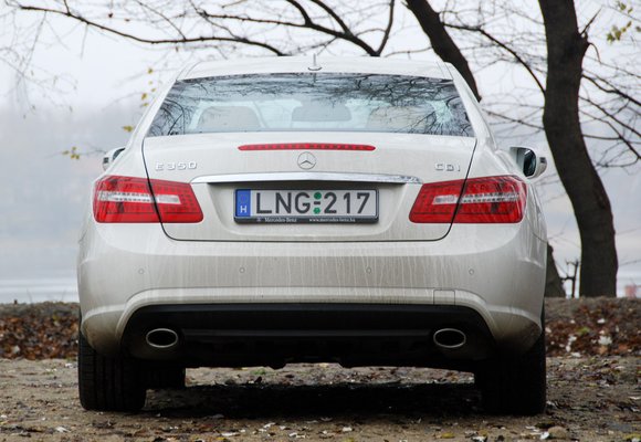 Az E kupé egyetlen gyenge pontja a futómű. Az E kupé a CLK utódja, ami egy alap C osztály volt E-osztály arccal, ez viszont egy E osztály a kisebb C tengelytávjával. A E és C futóművek között úgy sincs nagy különbség, úgyhogy gratulálhatunk az autónak: egyértelműen előléptették. Nem is gyenge, inkább túl erős pont az E Coupé futóműve: a mi éghajlatunkon ennél sokkal puhább rugózásra van szükség. Kanyarodni ezerrel? Persze, az nagyon megy, és élvezni is fogjuk, ha állandó lakcímünk Baden-Württenberg.