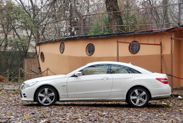 Alig vártam, hogy végre megkaparinthassam a kulcsát. Szeretem az erős Merci kupékat, volt is korábban, igaz, az ehhez képest gőzgép volt, mármint technikai értelemben. A baj viszont az, hogy ez az E kupé rettenetesen szeretne hasonlítani a W126 kupéra: B-oszlop nélküli építés, hátul leengedett állapotukban kicsit kilógó ablakok, az ajtó élén fél négyzetméteres aluborítás, biztonságiöv-előreadó automatika.