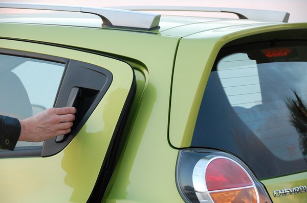 A sajtóanyag felhívja a figyelmet az illesztési hézagokra; ha nem is olyanok, mint egy tízszer ennyibe kerülő kocsin, ennyiért megbocsátom. És ha már itt vagyunk, kérem észrevenni a hátsó Alfa-kilincseket! Remek ötlet, jó kivitelezés: amikor húsz év múlva bejön a fiam, és szól, hogy kinézett magának egy húszéves Sparkot, azt fogom kérdezni, ez már az Alfa-kilincses, motorműszerfalas?