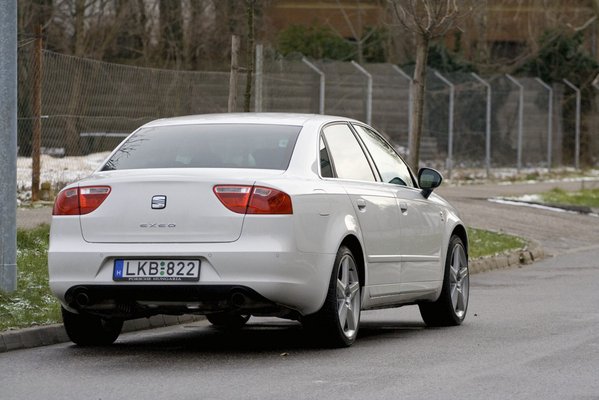 Mivel a kollégák már beszámoltak a kocsiról, nagyon röviden csak annyit, hogy tényleg nincs az égadta világon semmi baja. Kényelmes és csöndes, mindkettő nagyon. Akárhogy forgattam a motort, alig jutott be némi zaj az utastérbe, pedig van ereje és dinamikája is. Alul, bár nem fuldoklik soha, nem nagy szám, de 2500-tól új erőre kap, és szépen viszi a kocsit, lehet vele döngetni rendesen. A gyáriak 7,3 másodperces gyorsulást írnak, ami a számokat látván igaz lehet, de érezni csak annyit fogunk, hogy váltogatás nélkül is könnyedén előzünk, az Exeo ugyanis minden körülmények között nagyon nyugodt és békés marad.