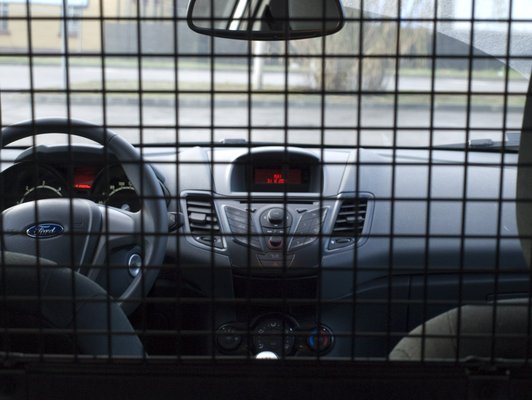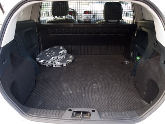 Ezt a Ford az új Fiesta Vannal annyira komolyan gondolta, hogy tényleg csak pár acéllemezt meg rácsot rakott a kocsiba, semmi változást nem eszközölt a belső téren. A donor a háromajtós változat volt. Annyira ugyanaz, hogy bekukkantva a raktérbe egy pár hangszórót, némi oldalkárpitot és pohártartós zsebet is találunk, amire az árunak minden bizonnyal nagy szüksége lesz. Bár persze tárolónak jó, egy egyliteres fagyállós flakon pont befér, kissé ferdén.