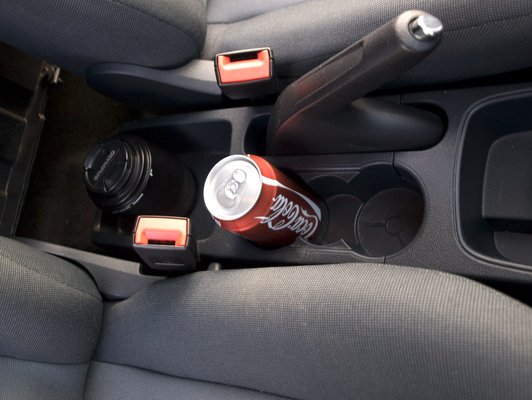 A tárolóhelyeket átgondoltabban oldották meg, mint a Transit Connectben. Nagyobb hátizsákot ugyan még mindig csak a raktérbe tudunk tenni, de a kabátot már simán besuvaszthatjuk az ülés mögötti térbe. A középső részben lévő pohártartó-kánaánba a literesig bármilyen üdítőnek találunk helyet. Trükkösen nem rugós szorítókkal, hanem a két pohártartó homorú kiképzésével oldották meg, hogy az energiaitaloknál elterjedt 0,25-ös doboznak is legyen hely.