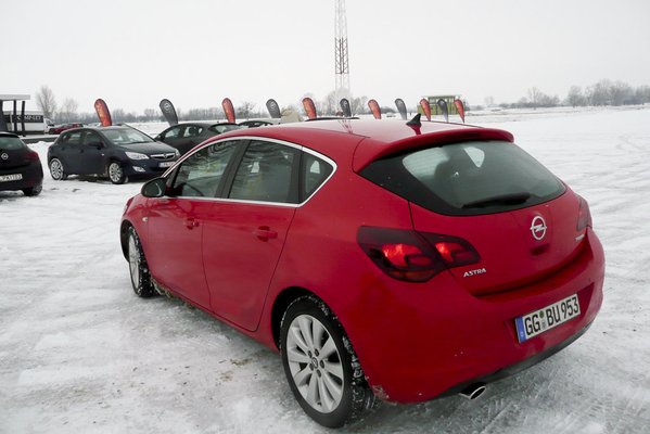 Félórányi szlalomozás után visszatértünk a bázisra. Én eredetileg teázni akartam, Borisz lelkiismeretesen elvitt egy dízelt is, amitől bennem is felülkerekedett a szakmaiság, így én is beültem egybe. Rögtön láttam, hogy valami nem stimmel; nehéz volt tetten érni a különbséget, mert a műszerfal vonalai, és látszólag az anyagok is ugyanolyanok, de bizony csak hasonlóak. Az alacsonyabb felszereltségű Astra már sokkal astrásabb, sprődebb és kopogósabb, egyszóval jobban hasonlít azokra az Opelekre, amikhez eddig dolgom volt, az F Astráig bezárólag.