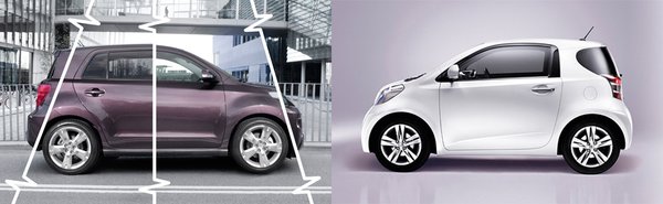 Grafikusunk, Tom el is készítette az Urban Cruiser zsugorításával az iQ-t. A közepéből kellett kivágni egy darabot, meg picit tömpébbre vágni az orrát és a popóját. Szép munka, nem?
