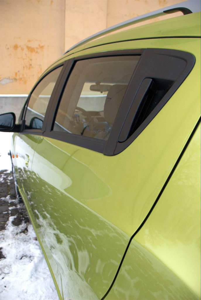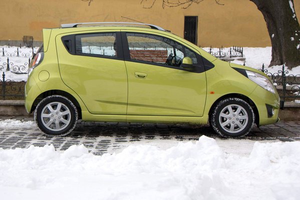 Egy trükköt azonban gyakoroljon be minden leendő Spark-tulajdonos. Alapvetően rézsút hátulról közelítsen mindig az autóhoz. Onnan néz ki legjobban a hátsó ajtó és a küszöbvonal párhuzamos, hullámos íveivel, amelyek körbeölelik a kerékjárati ívet és a csomagtartón folytatódnak. Egyáltalán nem néz ki úgy, mint egy olcsó autó. Az oldalablakok vonala hátulról előre meredeken esik, ezért hátul ülve erős a klausztrofóbia, cserébe elöl remek a kilátás oldalirányban: bevásárlókocsi, Demszky-karó nem marad látatlanul. Az ötcsillagos törésteszt azonban megköveteli az öles A oszlopokat, ezek bizony kellemetlenül kitakarják a szűk kanyarban szembejövőket.