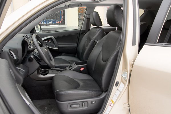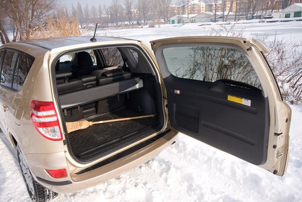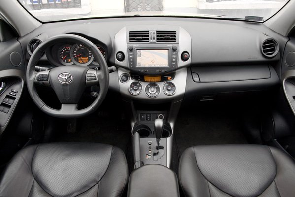 Az utastere lényegében változatlan, maradt a kétszintes műszerfal, ami meg új, az láthatatlan. Van bluetooth, hűthető a kesztyűtartó, térdlégzsákok és hasonlók. A méretek megfelelők, bár a RAV elég rövid, de mégis jó magas ahhoz, hogy szűkölködés nélkül el lehessen férni benne. A csomagtartó közepes méretű (410 l), de a hátsó székek előretologathatók, nem is kicsit. Továbbá a japán gyártású Toyoták előnyét is nyújtja: a hátsó öv racsnis, tehát, ha koppig kihúzzuk, és visszaengedjük, jól ráfeszíthető a gyerekülésre, stabilan tartja és nem lazul ki.