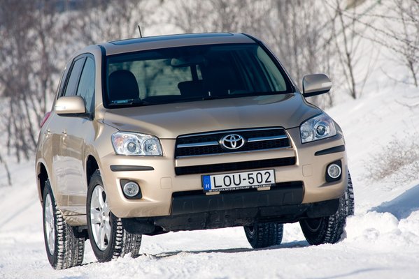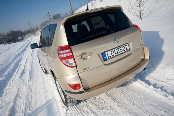 A RAV4 az automatikusan kapcsolódó összkerékhajtásával szinte ugyanúgy viselkedik havon, mint egy fronthajtásos kocsi. Könnyen elkaparnak az első kerekei, de közben észrevétlenül tolnak a hátsók is. Ettől aztán fényévekkel gyorsabb, mint bármi más, amit csak két kerék hajt. Szóval, remekül lehet nyomasztani a bénázó BMW-seket. Meg alázni is, de nagyjából ez a legnagyobb élmény a RAV4 vezetésében. Az orrtolós, ESP-zős, kipörgésgátlós viselkedése arra jó, hogy az átlag háziasszonyra ráijesszen egy picit, és visszavesz a gázból. Igaz, még úgy is gyorsabban fog haladni egy hétköznapi, nem RAV4-es anyukánál.