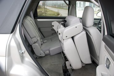 A jobb első ülés háta feltehetően egy ebédlőasztal akar lenni, de ha előredöntjük a támlát, mindenképpen kéne rá egy kockás abrosz. A vezetőoldali bőrülés állapota 12 ezer kilométer után elég súlyos, hullámosra nyúlt ülőlappal - ez még a Volvo és a Toyota legendásan hitvány bőreit is alaposan alulmúlja. Az oldalán olyan állítógombbal, amit Amerikán kívül legfeljebb Oroszországban engednének gyártásba.