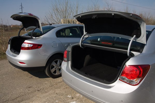 A hasonló kocsik között nagyon kimért minden centi és liter, nem csoda, hogy nem érezni különbséget a méretek között. Ha az átlagosnak mondható magasságomra beállítom az első ülést, még egy tenyérnyi hely marad a térdem előtt, amikor beülök hátra, mindegy, melyiket nézzük. Széltében is ugyanez a helyzet, ha valaki csak az autószalonban nézegeti a két autót, nem fedezhet fel érdemi különbséget. Még a csomagtartók is egyformának tűnnek, igaz, két nagy fekete üregről nehéz megmondani szemre, melyik a nagyobb. Elárulom, itt van igazi győztes: a Renault. Ezé 496 literes, a Cruze-é 450. Bár gyerekheverőt vagy lapra szerelt szekrénysort amúgy sem szállít ilyen szedánokban az ember, pusztán emiatt nem mondanék le a Chevrolet-ról.