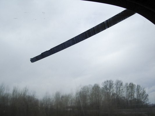 Aztán valahol az úrihegyi pihenő előtt, amikor már bátran cincáltam a sebességhatár bajszának alsó szálait, egy finom susogó hang kíséretében elszabadult az első szélvédő díszkerete, a szél alákapott, és óriási erővel rácsapott a két első oldalablakra. Én meghaltam egy kicsit, a hangból ítélve rosszabbra számítottam, minimum a blokk oldalán kiszaladt kóbor, lengő hajtókarokra, de az autó ment tovább. Tomnemtom viszont hívott, hogy nagyjából méternyi valami lengedezik az autó felett, mellett. Lassítottam, kihúzódtam, majd megálltunk a pihenőnél. Fapofával szálltunk ki a közútkezelő és a VPOP ott razziázó emberei előtt, és körbekutattuk az autó összes rejtett rekeszét Duct Tape, vagy legalább szigetelőszalag után, természetesen sikertelenül.